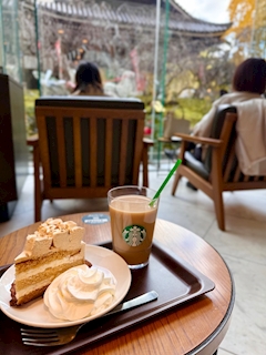 ちょっと前のデブ活🍰🐽 相変わらずスタバ沼におぼれてしまいがちです😇笑 ここは京都の六角堂のスタバやし⛩️ 庭園が席から見えるのがいい感じ🌳😍 今日は1週間ぶりの夜出勤です🍷